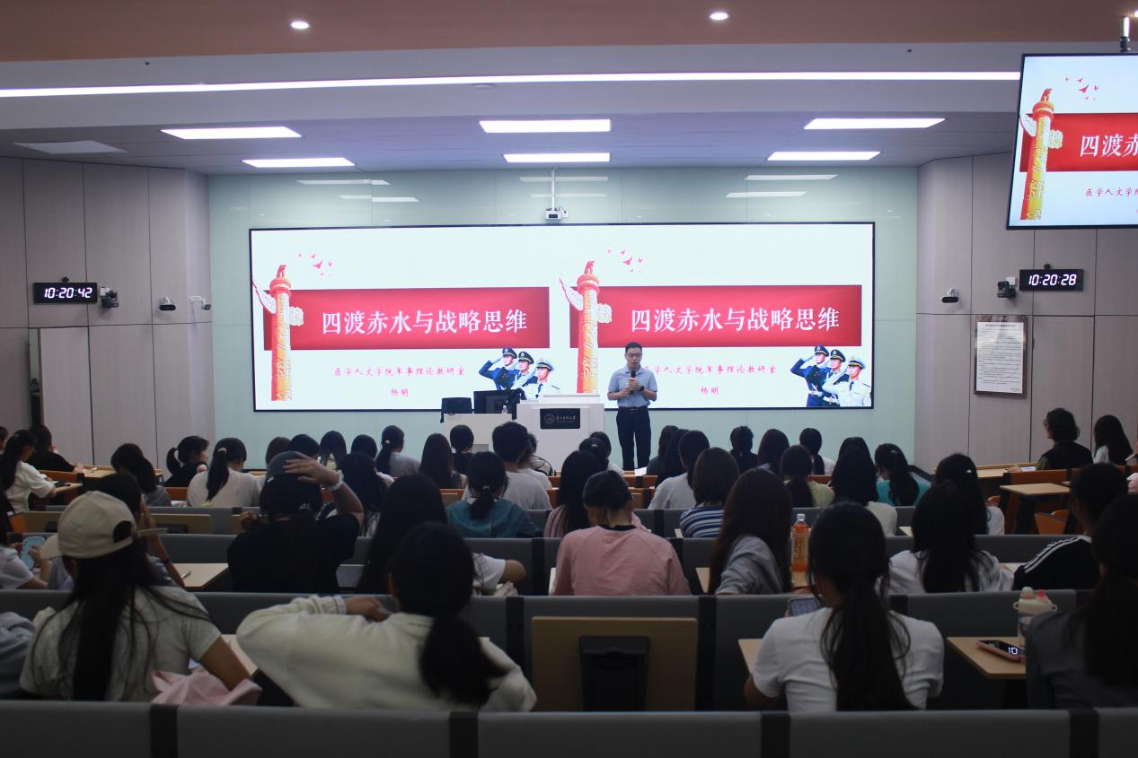 为纪念遵义会议召开90周年,传承和弘扬长征精神,太阳成集团tyc7111cc教师发展中心太阳成集团tyc7111cc分中心邀请军事理论教研室负责人杨明副教授于2025年9月18日在智慧教室M102S举办了主题为“四渡赤水与战略思维”的教学公开课,活动现场同步通过学习通进行全程线上直播。杨明结合历史地图和现场互动的方式,带领同学们重走那段烽火连…