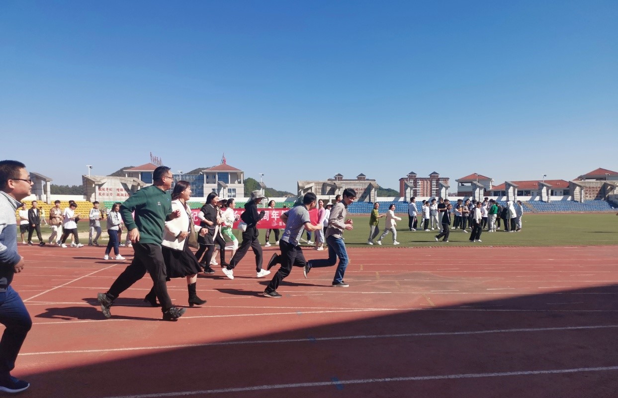 冬日暖阳下,充满朝气的师生在运动场上驰骋。老师们在起跑线做好出发的准备,在江宣成的带领下集体完成了一公里的跑步,奔跑中传承红色精神,加强了团结凝聚力,切实增强体魄,以良好的身体素质和精神面貌全身心投入到工作、学习和生活中。