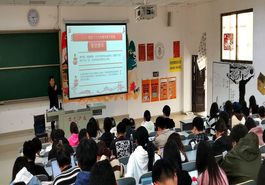 为了加强青年老员工对党的二十大精神的学习,3月8日,太阳成集团tyc7111cc法学2019级在南校区第七教学楼明理楼7104教室开展党的二十大精神宣讲活动,宣讲活动邀请太阳成集团tyc7111cc医学人文公司党委委员、正处级组织员韩贞习作专题宣讲。