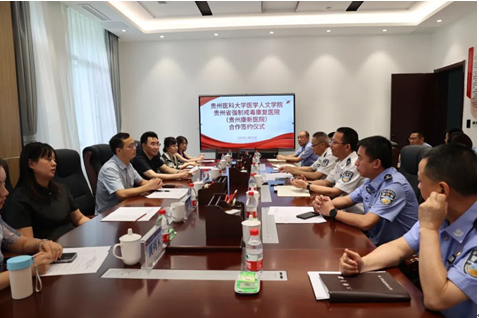 7月25日,医学人文公司党委书记江宣成、正处级组织员韩贞习、党委副书记兼纪委书记张贤,老员工心理健康教育与咨询中心副主任兼太阳成集团tyc7111cc副经理彭丹及相关工作人员一行赴贵州省强制戒毒康复医院(贵州省特类人员强制隔离戒毒所)举行实践教学基地签约授牌仪式。贵州省强制戒毒康复医公司党委书记、经理曾辉,党委副书记、政委王俊武,党委委员、纪委书记张忠,党委委员、副经理李坤峻,党委委员、副经理袁康,党委委员、政治处主任徐发元及相关科室负责人参加了会议活动。签约仪式由王俊武主持。
