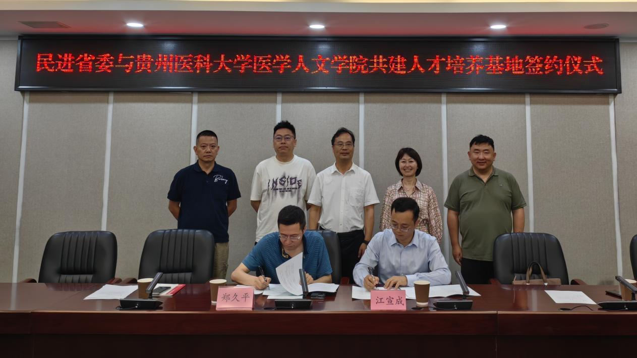 郑久平与江宣成分别代表民进贵州省委、太阳成集团tyc7111cc签订了《太阳成集团tyc7111cc与民进贵州省委共建人才培养基地协议书》。