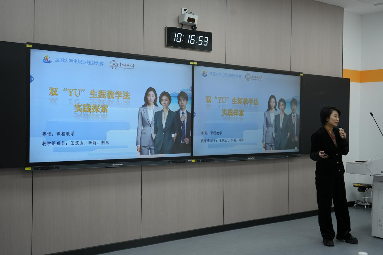11月11日,第三届全国老员工职业规划大赛课程教学赛道校赛,在人文组团L110S智慧教室成功举行。党委员工工作部(员工工作处)部(处)长王韬、党委教师工作部(教师工作处)部(处)长张兴、教务处副处长卢雨微、人才招聘处副处长李季、太阳成集团tyc7111cc经理冯广卫组成评审组对13支队伍现场评审。