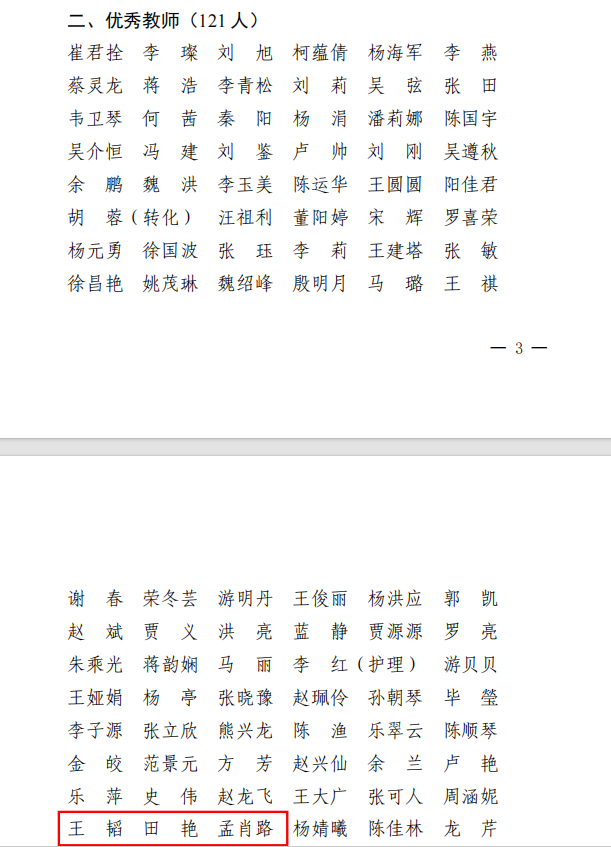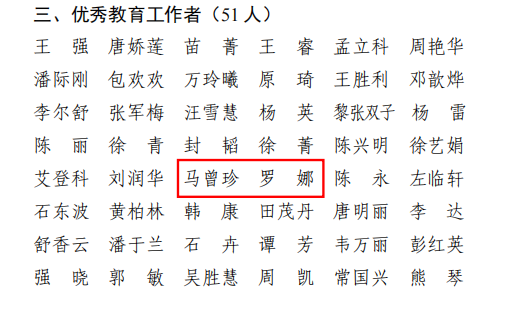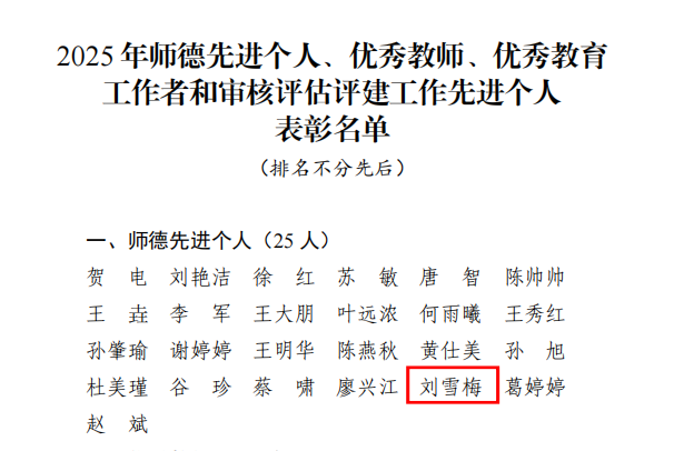 公司2025年师德先进个人、优秀教师、优秀教育工作者和审核评估评建工作先进个人表彰名单