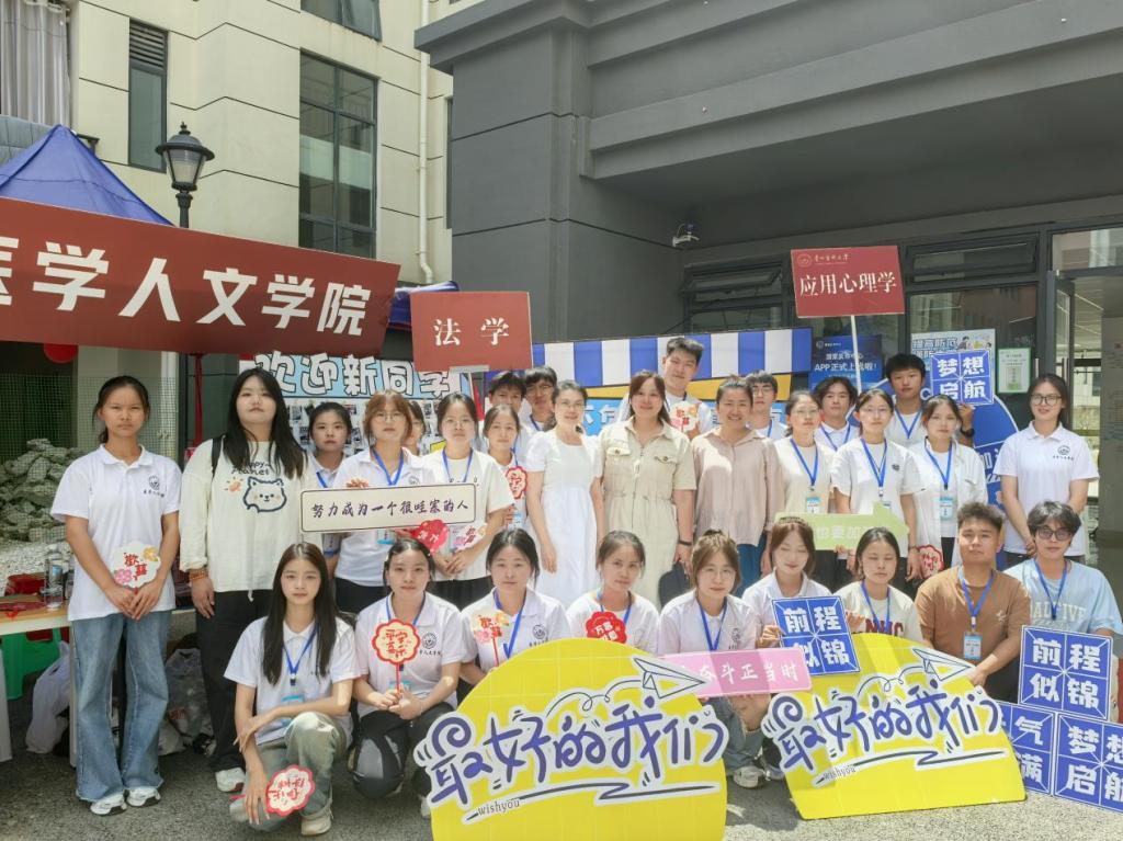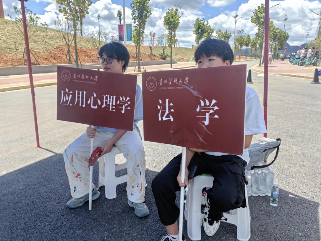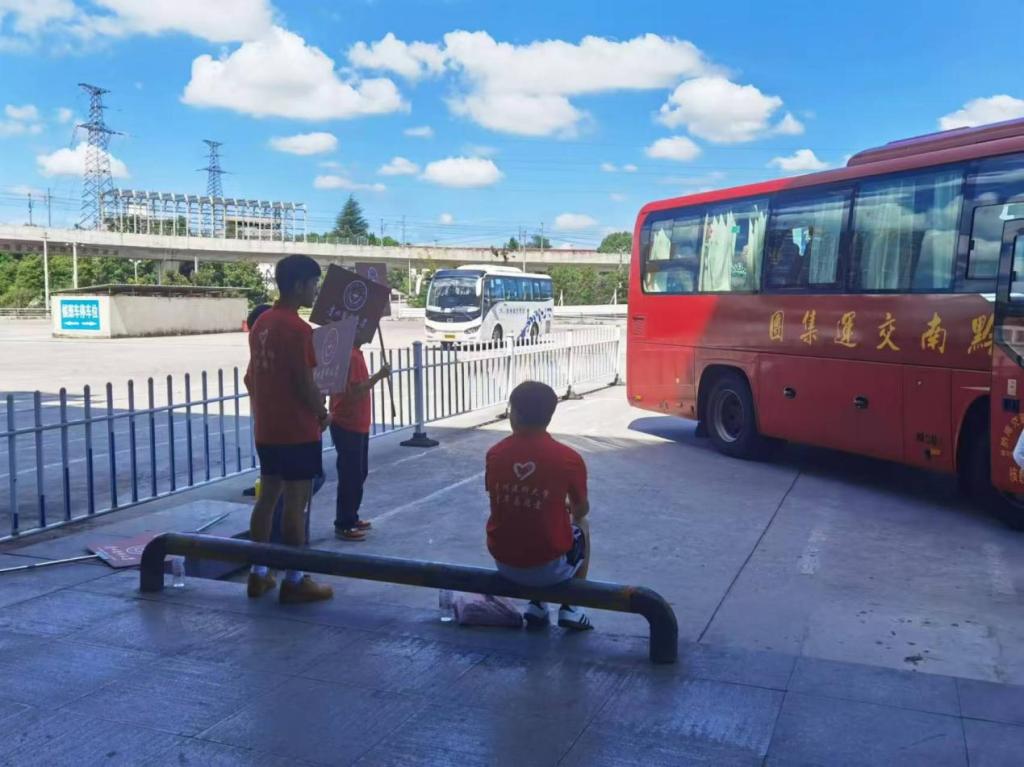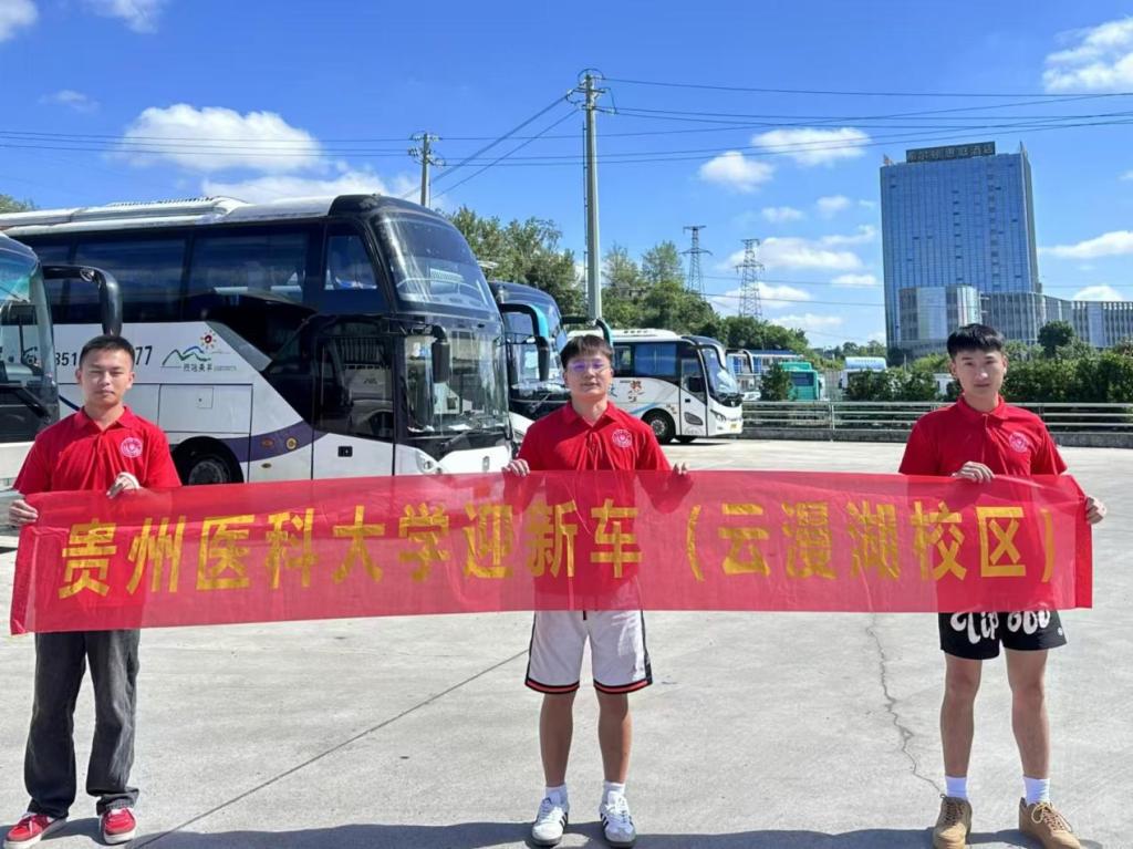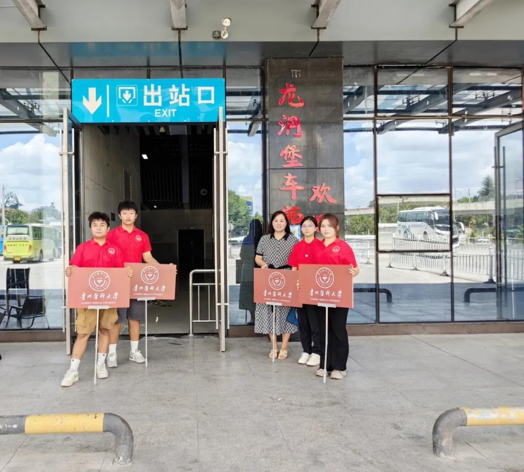 报到当天,公司老师和员工志愿者身穿统一的志愿者服装,贵阳龙洞堡车站接站点参加全校迎新志愿者‌手持引导牌,‌热情地迎接每一位新生,为他们踏入贵医的第一站保驾护航。
