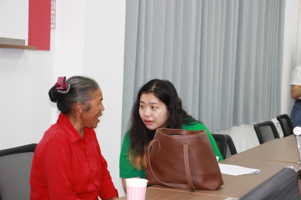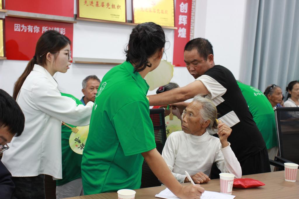 在一对一心理访谈中,实践队以耐心与尊重搭建沟通的桥梁,认真倾听老人们的心声,了解他们的喜怒哀乐与生活期盼,让他们感受到被关注、被重视的温暖。此外,我们还带领老人们体验体验团扇制作,为这份陪伴增添了别样的色彩。老人们在笔墨晕染与创意发挥中舒展身心,在动手创作的成就感里收获满满乐趣。活动室里,欢声笑语与笔墨清香交织,轻松愉悦的氛围在互动中自然流淌,也让“心与心的连接”变得更加紧密。