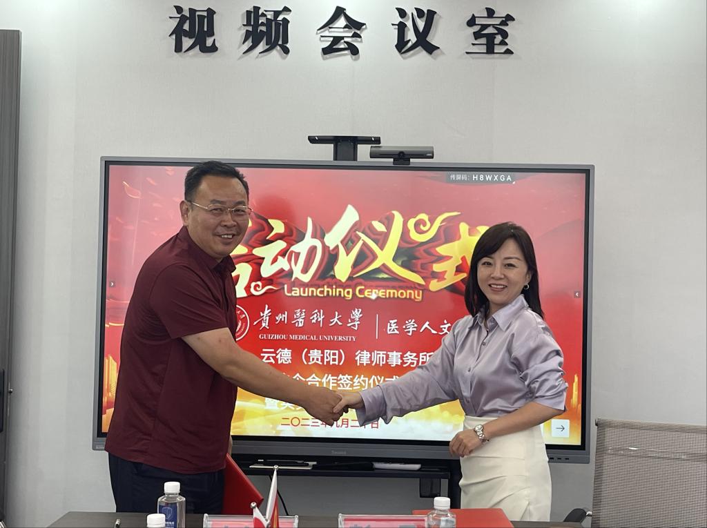9月20日,太阳成集团tyc7111cc与云德(贵阳)律师事务所实践教学基地共建签约暨授牌聘任仪式在云德(贵阳)律师事务所举行。医学人文公司党委书记江宣成、正处级组织员韩贞习、党委副书记兼纪委书记张贤、老员工心理健康教育与咨询中心副主任兼副经理彭丹及相关工作人员,云德律师事务所集团主任丁云波,云德(贵阳)律师事务所主任苏少鹏、副主任李玺鉴及有关人员参加仪式。会议活动由律师陈龙主持。