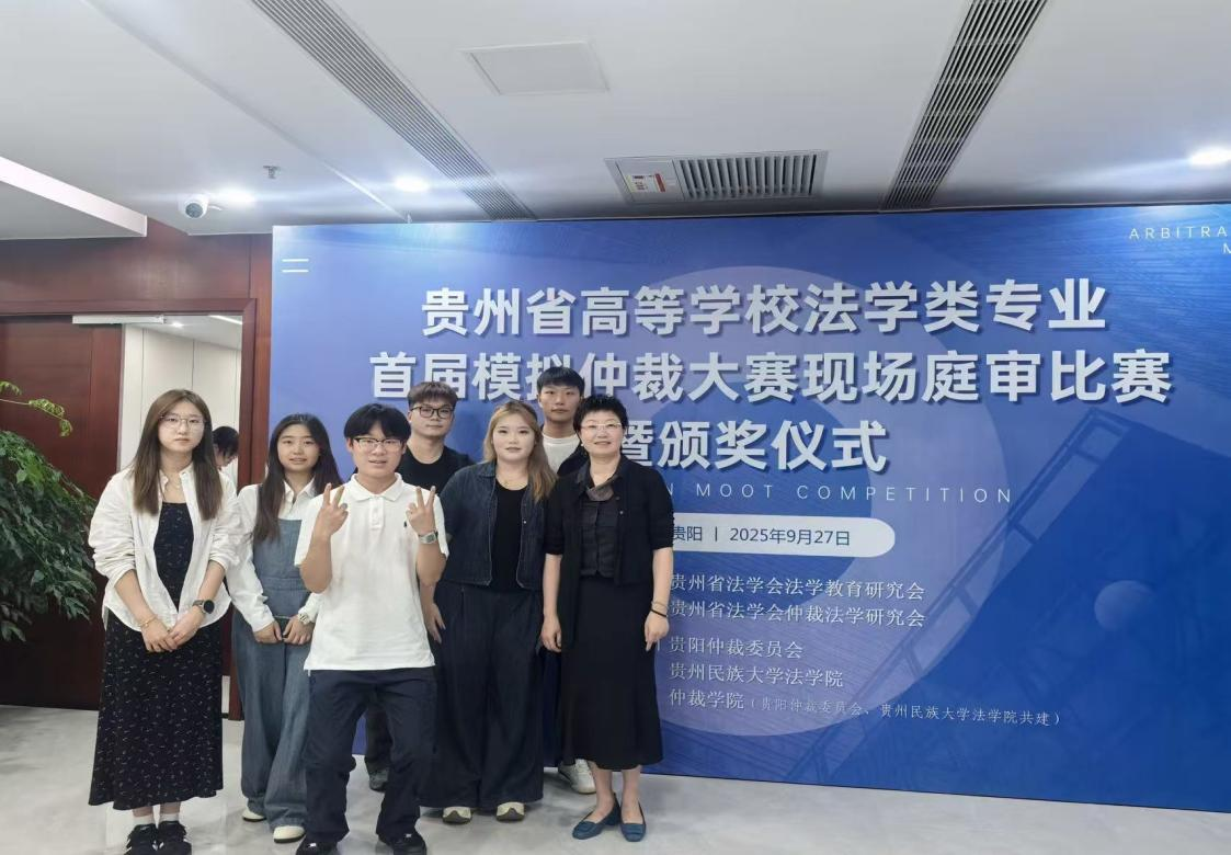 9月27日,由贵州省法学会仲裁法学研究会、贵州省法学会法学教育研究会主办,贵阳仲裁委员会、太阳成集团tyc7111cc及仲裁公司承办的“贵州省高等公司法学类专业首届模拟仲裁大赛”现场庭审比赛暨颁奖仪式在贵阳举行。公司法学专业员工积极参赛,荣获大赛“优胜奖”。