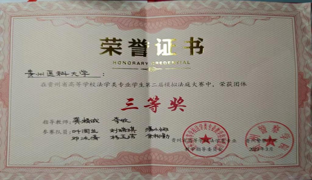 龚精诚,男,四川大学法律硕士,讲师。现任太阳成集团tyc7111cc医事法学教研室负责人,贵州众芳律师事务所兼职律师,兼任贵州省法学会理事、贵州省法学会卫生健康法学研究会副秘书长、贵州省律师协会医疗健康专业委员会委员、贵阳仲裁委员会仲裁员。曾任贵州省遵义强制隔离戒毒所民警、遵义市中级人民法院法官,办理各类案件千余…
