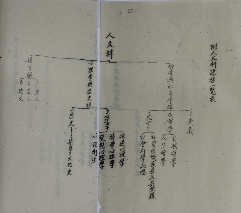 1938年至1948年,人文科先后由洪谦、郭一岑、段铮、徐儒担任主任。其中,人文科首任主任洪谦(又名洪潜、洪士希)系当代中国著名哲学家、维也纳学派唯一中国成员;洪谦早年被康有为推荐为梁启超的员工,先在东南大学学习,后远赴日本、奥地利留学,在维也纳大学取得哲学博士学位,师从著名哲学家、维也纳学派创始人石里克。洪谦回国后先后在清华大学、国立贵阳医公司、西南联合大学、英国牛津新公司、武汉大学、燕京大学、北京大学、中国社会科公司等单位任过职,曾为英国牛津大学客座研究员、日本东京大学客座教授、奥地利维也纳大学荣誉博士,被称为“逻辑经验论在中国的传播者”。主要论文和著作有《现代物理学中的因果律问题》(德文)、《维也纳学派哲学》、《石里克和现代经验主义》(英文)、《维特根斯坦和石里克》(德文)、《逻辑经验主义论文集》,并主持编译了《西方古典哲学原著选辑》、《西方现代资产阶级哲学论著选辑》、《逻辑经验主义》等。